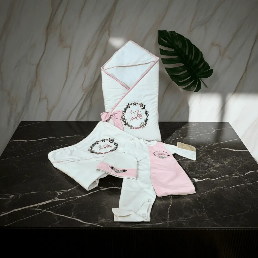 طقم مواليد بناتي 4 قطع مع حقيبة