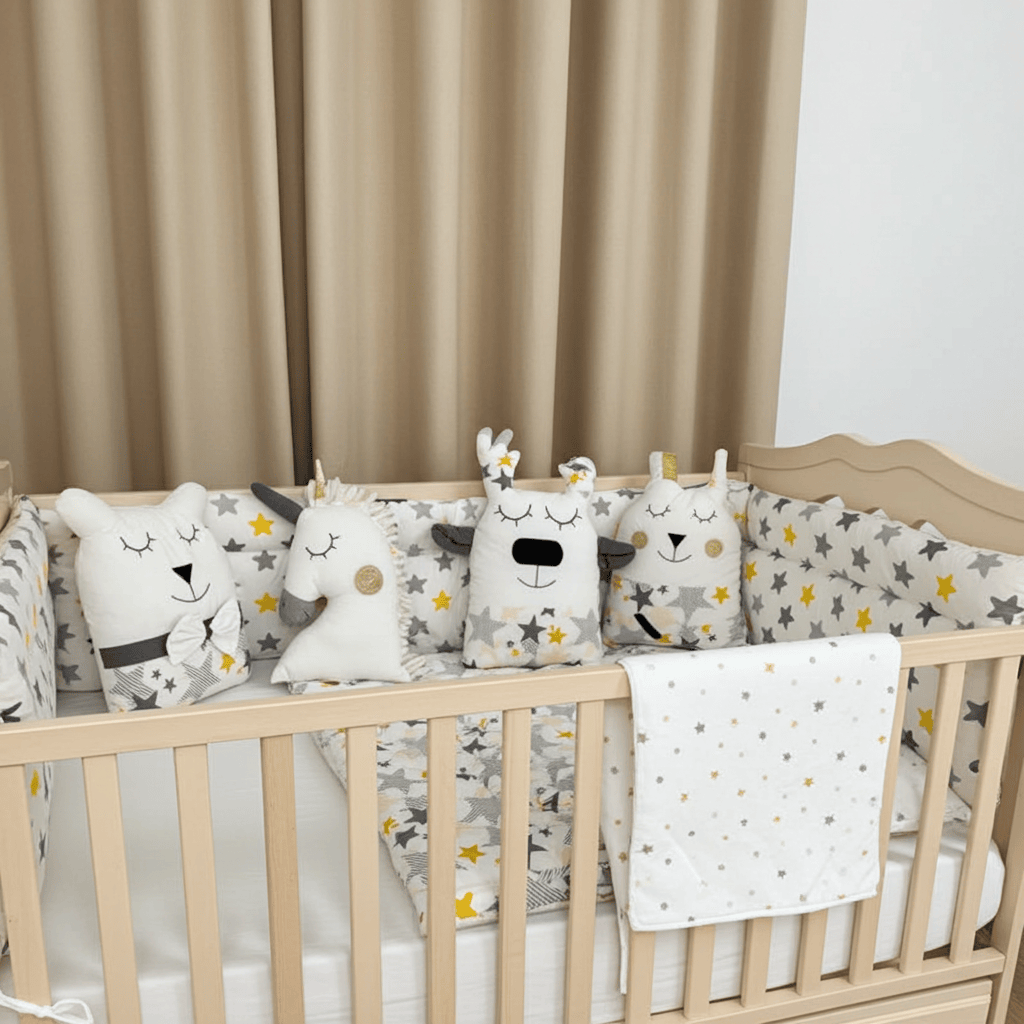 مصدات سرير أطفال بشكل مجسم وتطريز 3+3